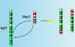 染色体平衡易位:两条染色体间相互交换了片段。在普通人群发生率为1.9%;染色体平衡易位患者流产和生畸形儿的可能性极高,平衡易位的患者,后代只有1/18是正常的,1/18是携带者,16/18是异常的。